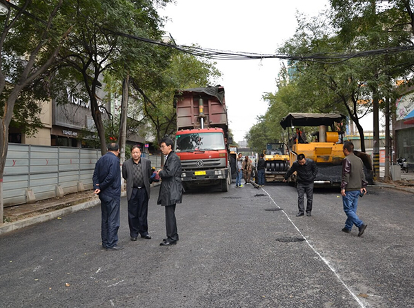 下圖為:咸陽(yáng)市城建局韓保鋒局長(zhǎng)、咸陽(yáng)市市政工程管理處楊偉生主任、咸陽(yáng)市建筑安裝工程總公司趙拓總經(jīng)理等在樂(lè)育路施工現(xiàn)場(chǎng)檢查、指導(dǎo)工作。