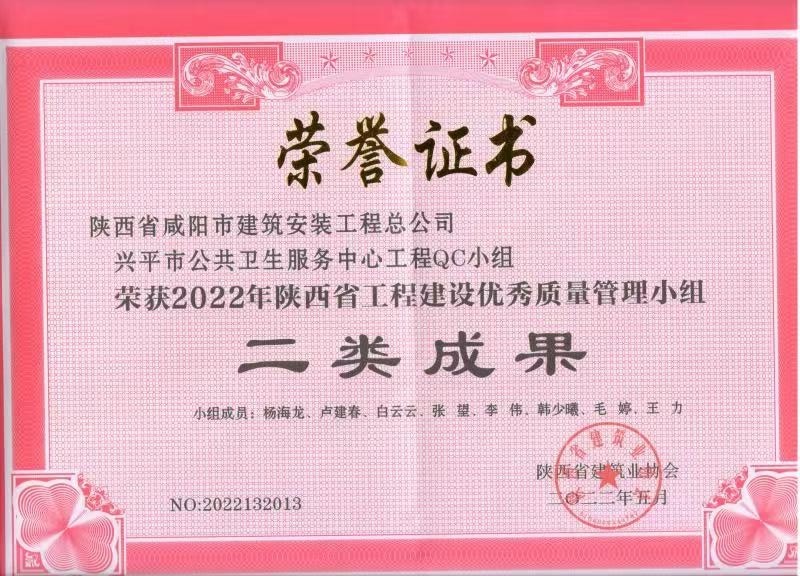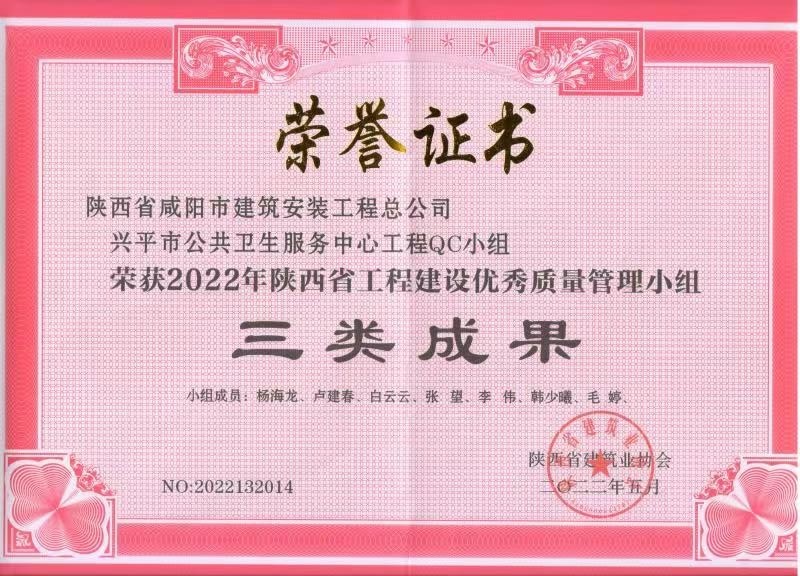 上一篇:2024年度咸陽市建設(shè)工程“秦陽杯”榮譽證書